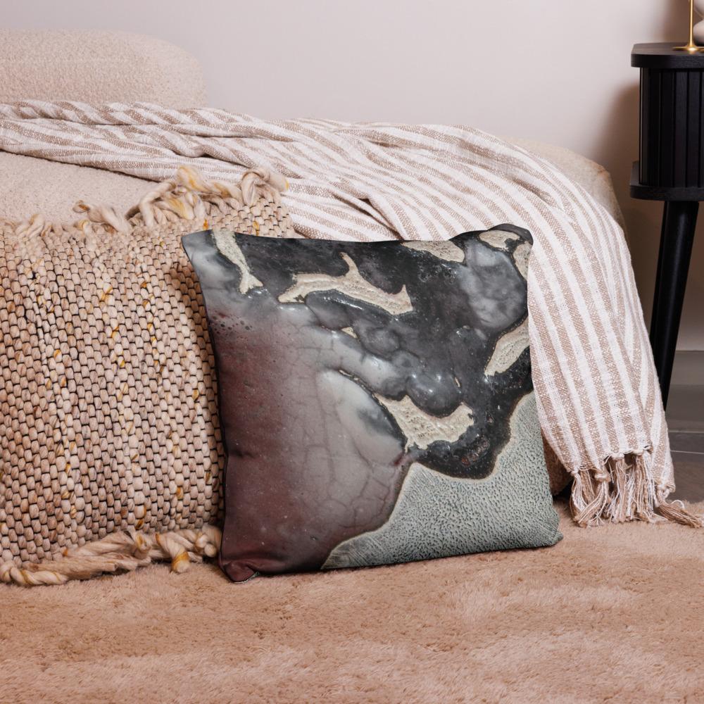 Modern absztrakt minta tűzzománc textúrából – elegáns párna, ami feldobja a letisztult tereket.